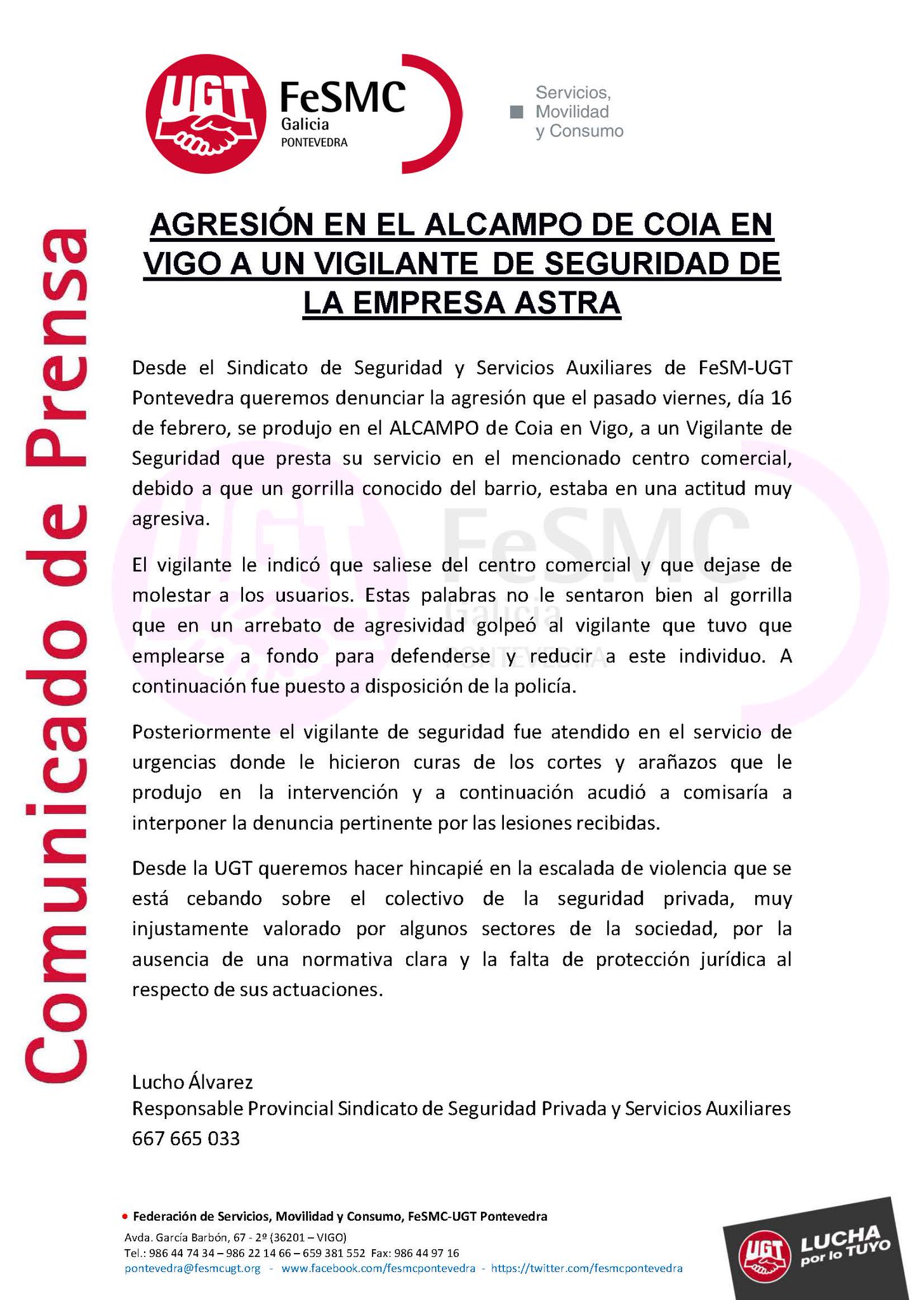 AGRESIÓN EN EL ALCAMPO DE COIA EN VIGO A UN VIGILANTE DE SEGURIDAD DE LA EMPRESA ASTRA