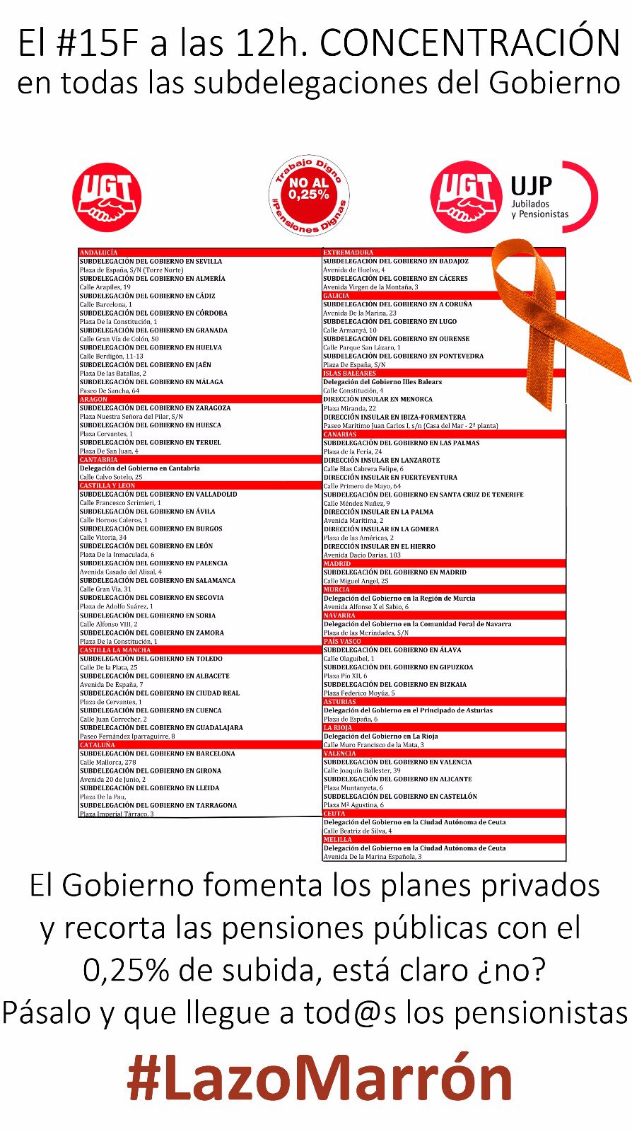 El 15 de Febrero a las 12 horas, concentraciones en todas las Subdelegaciones del Gobierno