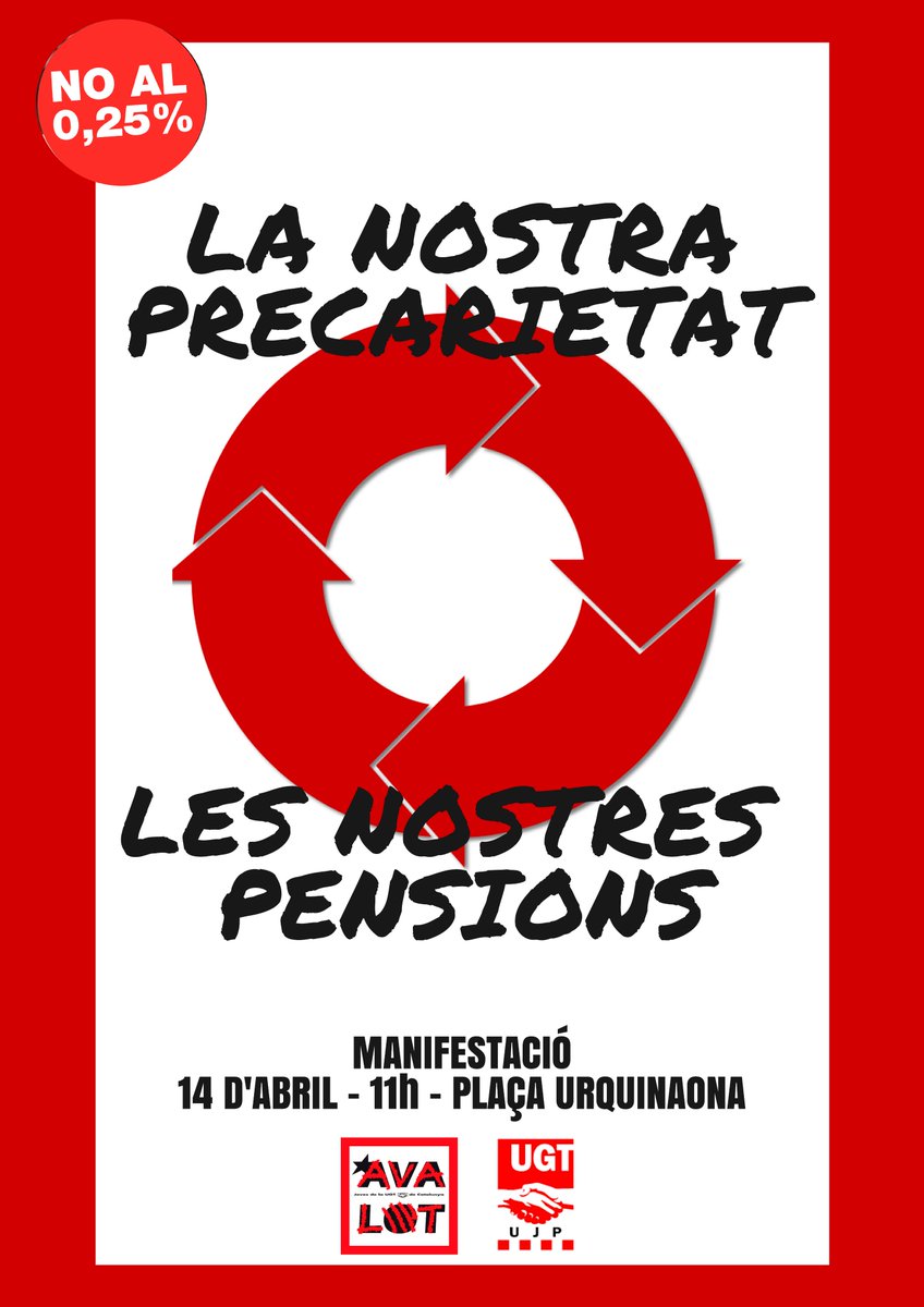 Aquest dissabte 14, a les 11 hores a Plaça Urquinaona de Barcelona: manifestació en defensa del sistema públic de pensions.